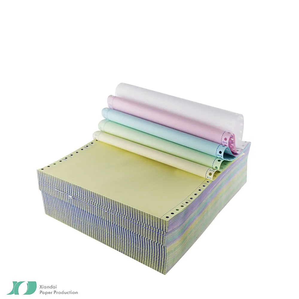 Rollo de papel sin carbónNombre de la marca: XiandaiTamaño: 9.5 "* 11"Plys: 1 capaColor blancoCapacidad: Fábrica con 40 máquinas.Certificación: ISO9001Materia prima: Pulpa de madera 100%